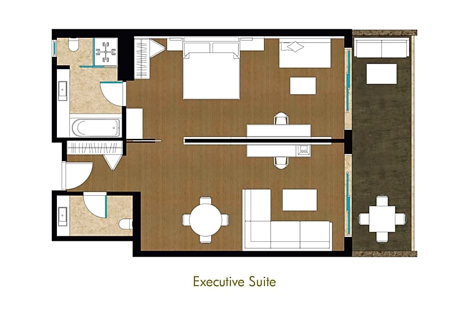 This spacious suite is consisted of of 1 living room, 1 separate bedroom and 1 bathroom with a bath and free toiletries. The air-conditioned suite offers a flat-screen TV with cable channels, soundproof walls, a tea and coffee maker, a seating area as well as pool views. The unit offers 3 beds.